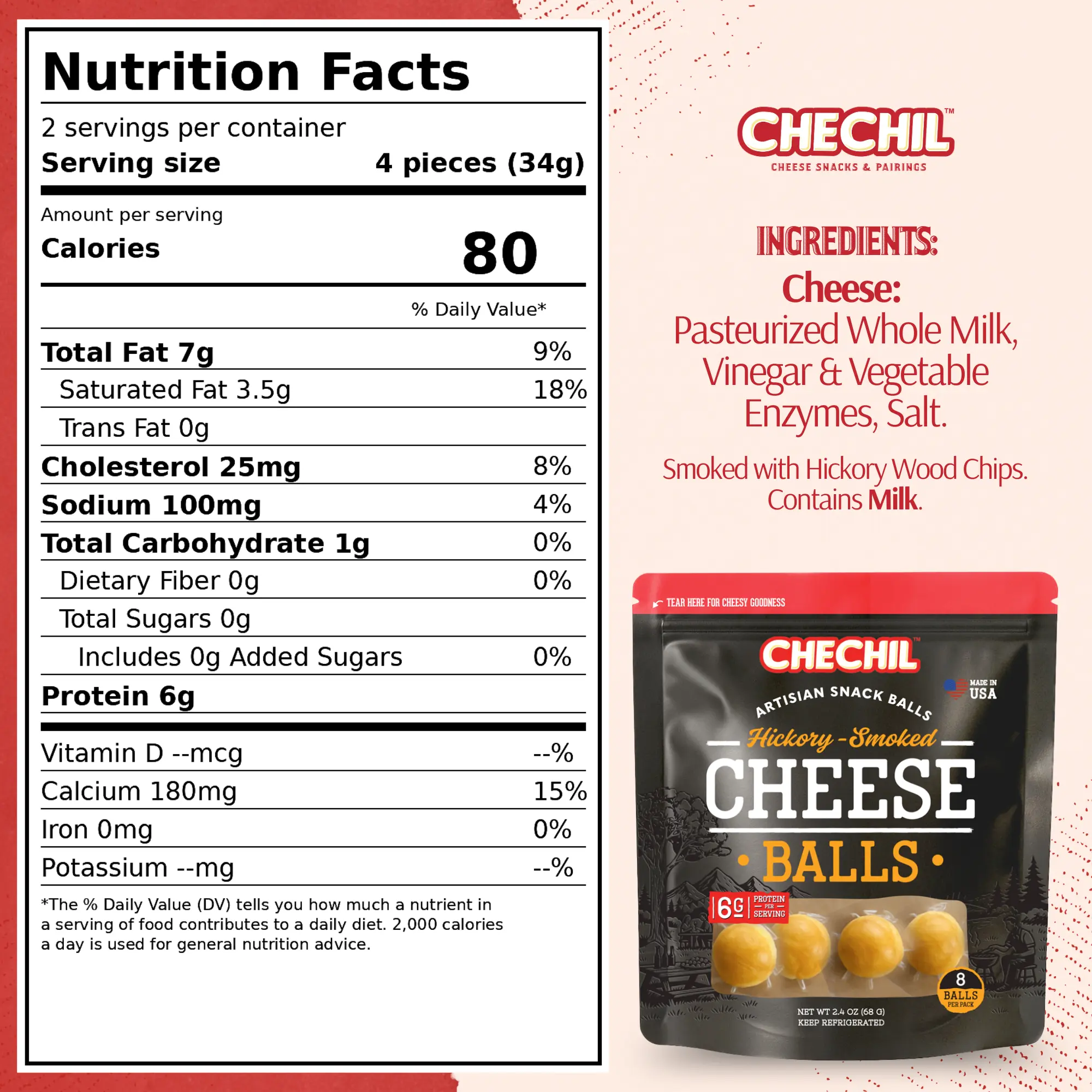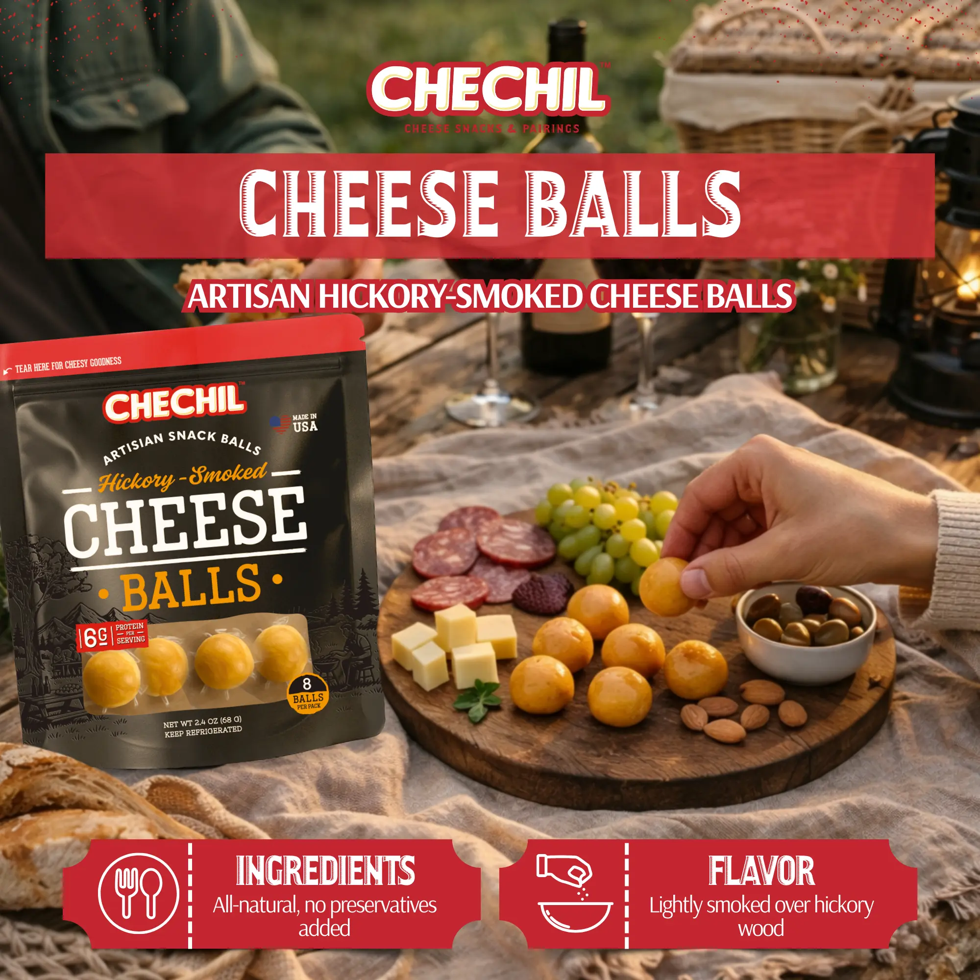 Chechil Smoked Balls are small, smoky, and extra convenient. Lightly smoked over hickory woodchips and perfectly salted, they deliver bold Chechil flavor in poppable bites designed for effortless snacking.